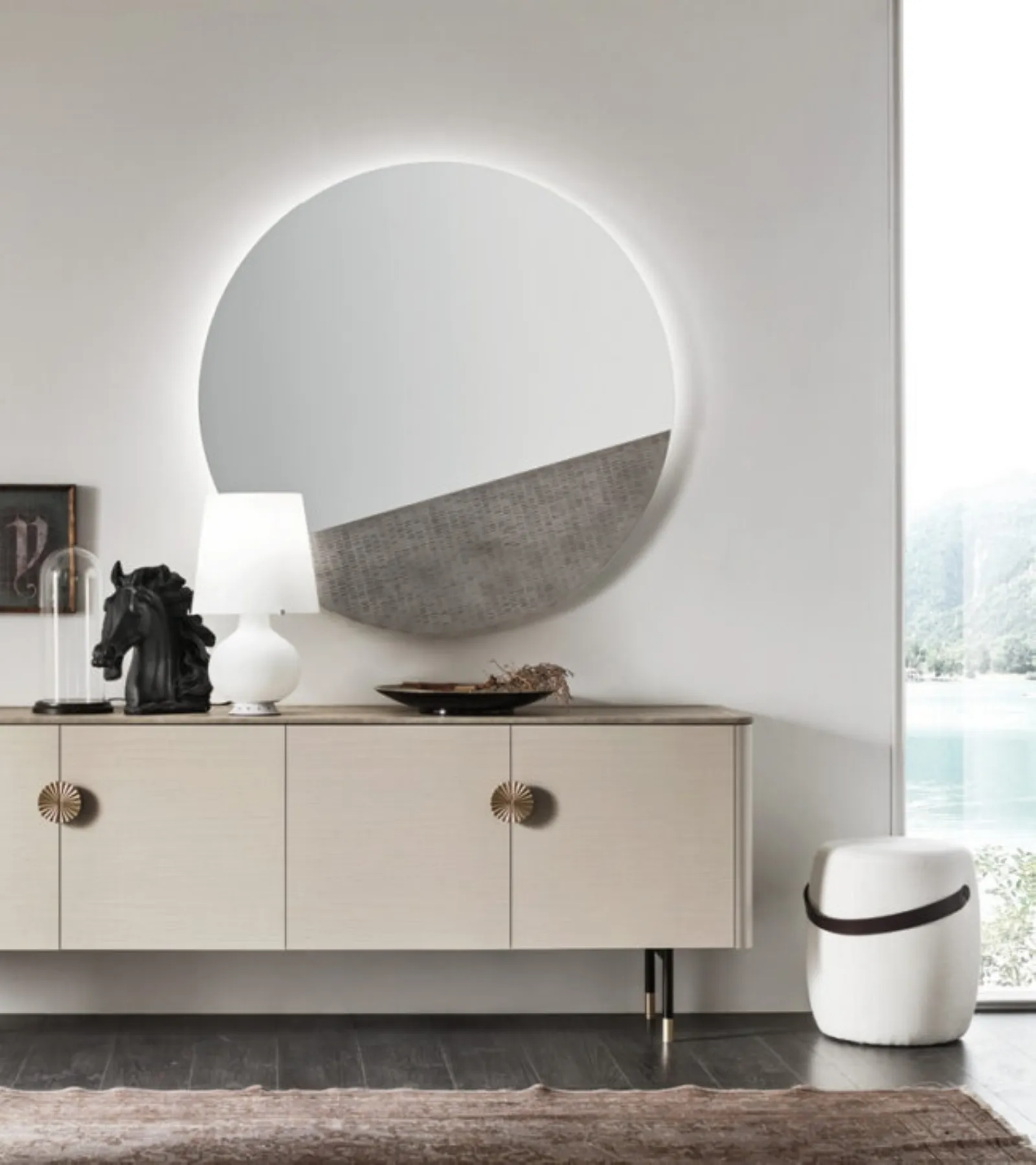Altamente versatili e multifunzionali, i Complementi moderni in melaminico svolgono funzioni diverse: completano le doti pratiche e il valore estetico dell'ambiente. Complementi e specchi personalizzano l'arredo di casa, riempiendo lo spazio in modo utile e rendendolo assai funzionale e di grande valore estetico. Nel nostro showroom potrai vedere dal vivo l'eccellenza dei modelli di specchi moderni in melaminico della marca, proprio come questa soluzione in foto. Le composizioni arredative di charme del brand Maronese personalizzano l'ambiente con colore e gusto, ricreando peculiari atmosfere arredative.