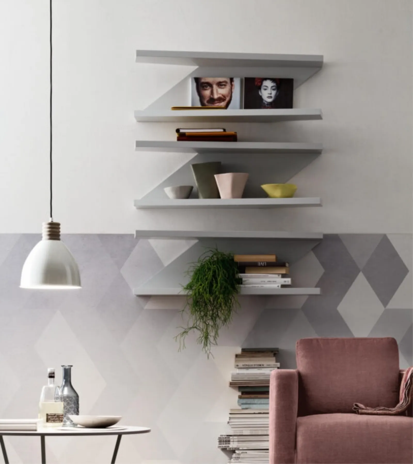 Altamente versatili e plurifunzionali, i Complementi moderni in melaminico assolvono a funzioni disparate: ultimano le doti pratiche e l'estetica del locale. Nel nostro showroom potrai visionare in prima persona la qualità dei modelli di mensole moderni in melaminico dell'azienda, proprio come questa soluzione in foto. Complementi e mensole personalizzano l'arredo di casa, occupando lo spazio in maniera utile e rendendolo accogliente e bello a vedersi. Mensola Zig-Zag di Maronese in melaminico: darà personalità e charme a un locale arredato con mobili ed elementi accessori dai richiami moderni.