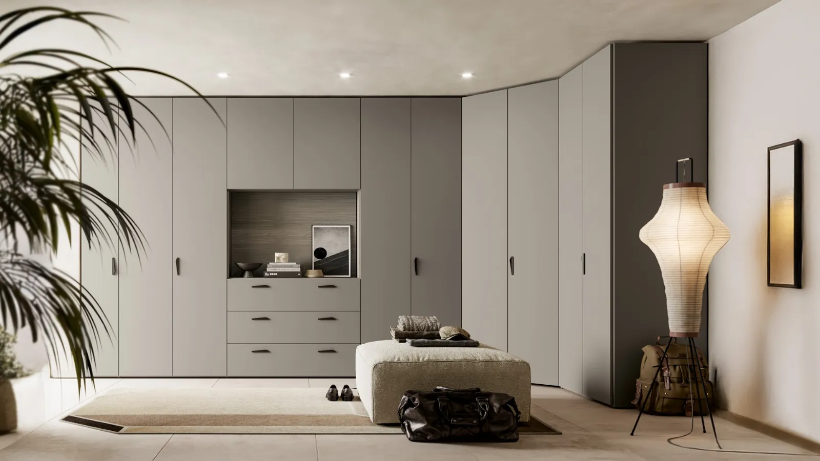 Gli Armadi ad angolo con ante battenti sono elementi irrinunciabili nella camera da letto, per renderla arredata con gusto, funzionale e completa di tutto. Contattaci e ottieni informazioni sulla nostra linea di Arredamento Casa: avrai la possibilità di completare la zona notte avendo a disposizione una ricca gamma di contenitori moderni, come l'armadio in melaminico nell'immagine. Per arredare alla perfezione una stanza bella e funzionale, scegli le più belle soluzioni dei migliori produttori, letti, armadi e comodini di alto contenuto estetico.