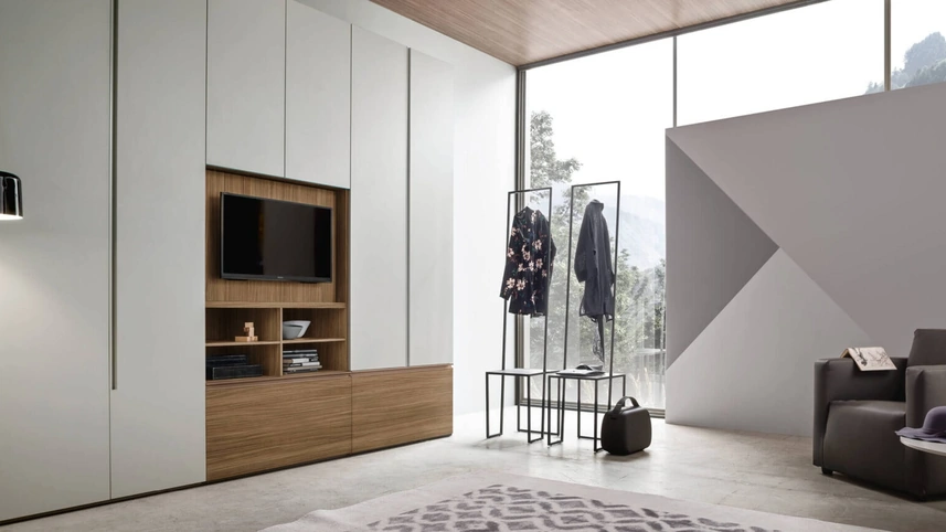Armadio Step Up con anta TV girevole di Maronese: compila il form per informazioni e preventivi e progetta la tua casa come l'hai sempre immaginata. Nella nostra linea di Armadi a muro moderni con ante battenti potrai trovare anche il modello presente in foto, perfetto per chi cerca praticità e design. Questa proposta, tra i vari modelli a muro con ante battenti di Maronese, è garanzia di solidità, stile e raffinatezza duraturi nel tempo. Per ultimare il concept d'arredo in una camera da letto bella e di grande qualità, abbiamo scelto per te le più belle e attuali soluzioni Maronese, diverse per buon gusto, dimensione, finitura e accessori.