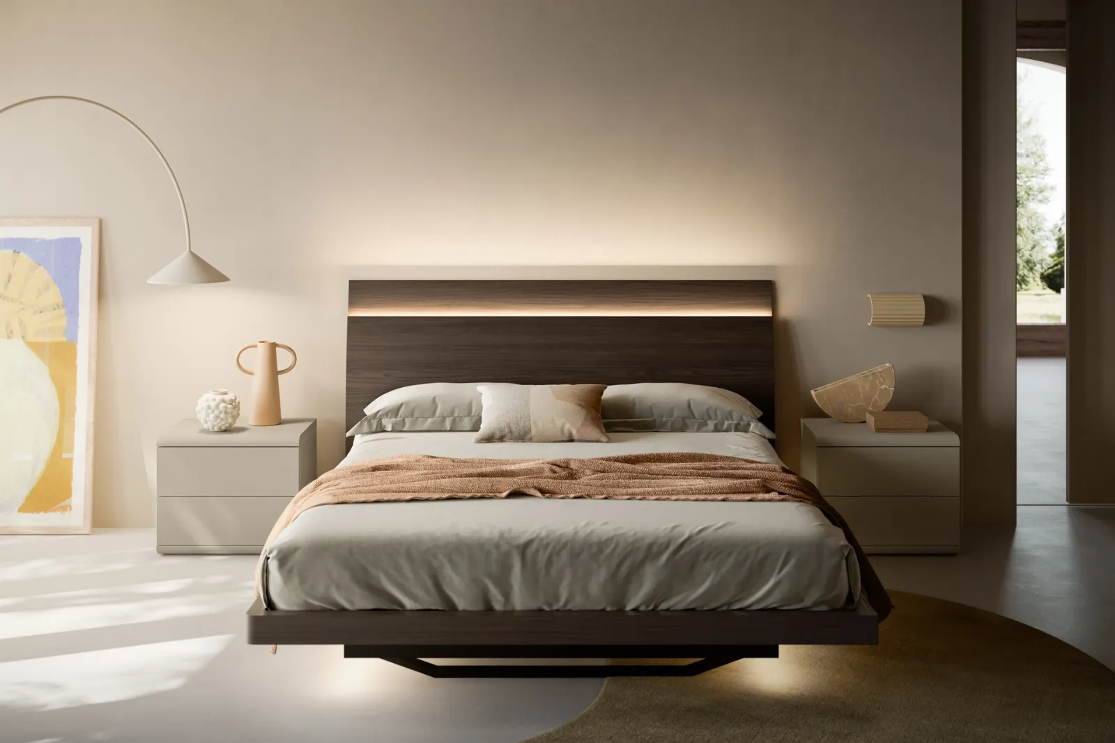 Se desideri creare un'atmosfera intima e rasserenante, il modello visibile in foto fa al caso tuo: nella stanza del riposo dovrai creare un'atmosfera rasserenante, per farti rigenerare le energie ogni notte. Se desideri ammobiliare spazi design, ti aspettiamo per illustrarti la nostra design di Arredamento Casa per realizzare il tuo progetto su misura. Durevolezza dei materiali e grande comfort sono gli ingredienti che distinguono tutti i prodotti della firma, tra cui anche il letto in melaminico in foto. Con il Letto con testiera doppia Lotus di SantaLucia del rinomato brand, leader del settore, potrai completare la tua camera assicurandoti comfort, funzionalità e uno stile raffinato. Scopri in negozio una ricca gamma di Letti con testiera, mobili e oggetti accessori per la zona del riposo delle migliori marche.