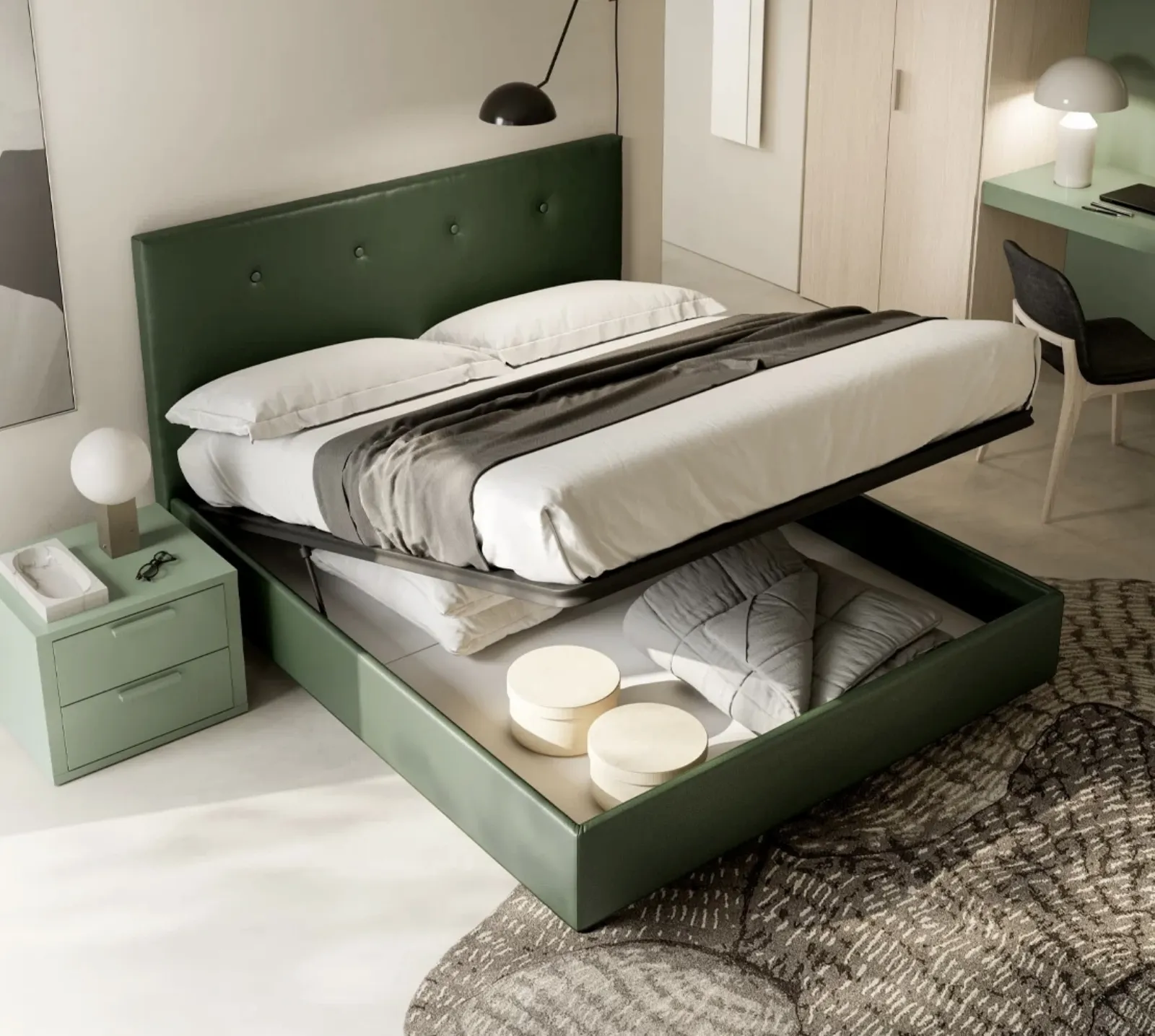 La camera è lo spazio di casa che più mostra la personalità di chi la utilizza, locale in assoluto dedicato al relax, alla distensione e alla riservatezza. Se desideri garantirti l'agio più totale nei tuoi momenti di relax, scegli i Letti matrimoniali moderni in ecopelle come il modello mostrato in foto. Il Letto matrimoniale Eros di SantaLucia è una delle più belle soluzioni del brand, specialista del buon sonno, capace di assicurare funzionalità, comodità e uno stile unico. Nel nostro sito troverai le migliori soluzioni dei migliori produttori specializzati nell'arredo per la camera da letto, con un’ampia possibilità di personalizzazione in quanto a colori e abbinamenti, accessori e molto altro.