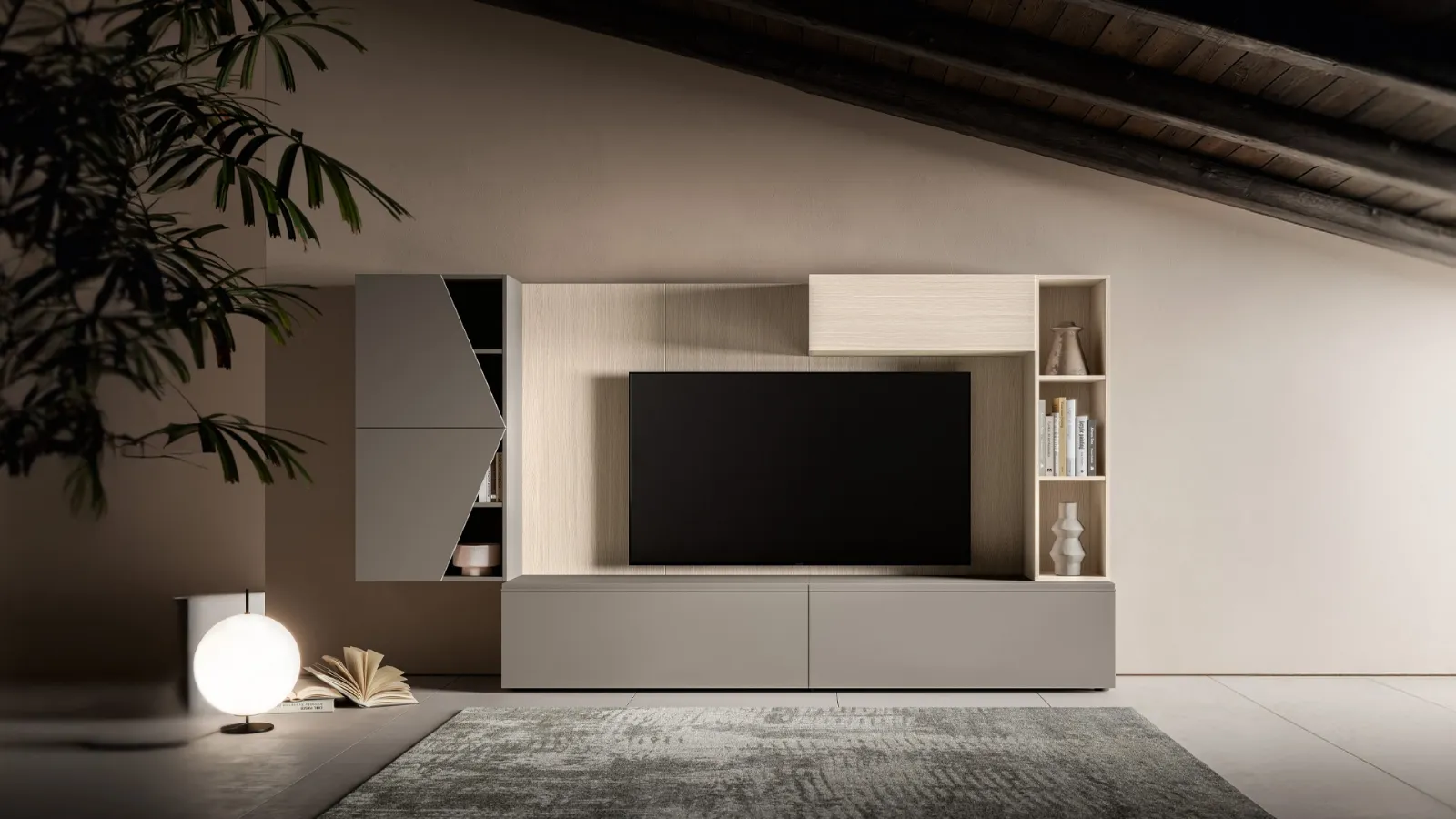 Per informazioni e preventivi sulla Parete Attrezzata Pratico PTG423 di SantaLucia nella fotografia contattaci! Il modello proposto è realizzato in melaminico, ma grazie ad una grande varietà di finiture, tonalità e forme, potrà adattarsi a stili di ogni tipo. Questa parete attrezzata è una delle soluzioni dell'azienda e ti permetterà di arredare il soggiorno secondo le più particolari esigenze abitative. Le Pareti Attrezzate hanno acquisito un posto fondamentale nella zona giorno delle nostre case: sono mobili plurifunzionali e salvaspazio sempre realizzabili su misura.