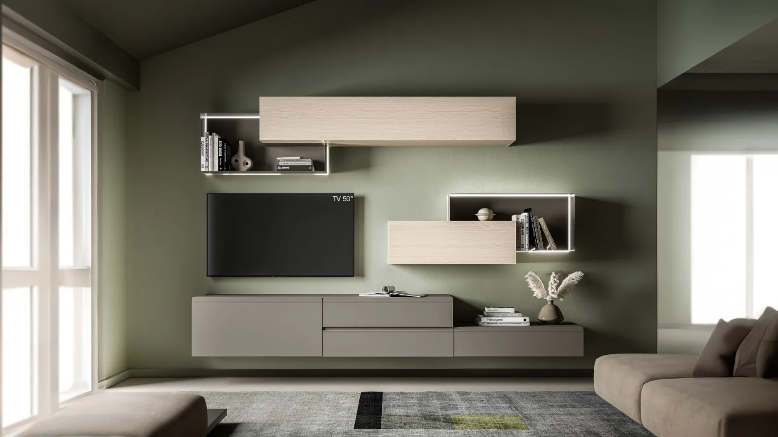 La Parete Attrezzata Pratico PTG433 di SantaLucia in foto, con finitura in melaminico, risolve le più particolari problematiche abitative di stile e spazio senza rinunciare alla ricerca estetica. Se cerchi mobili salvaspazio e realizzabili su misura per te, contattaci e ottieni informazioni sull'Arredamento Casa dei migliori brand. Un po’ librerie, un po’ mobili contenitori ed espositori: le Pareti Attrezzate sono ideali per attrezzare uno spazio pratico e operativo. Anche in un soggiorno di dimensioni contenute, questo tipo di arredo riesce a ottimizzare gli spazi usufruendo al meglio di ogni angolo e assicurando componibilità personalizzabile tipica delle soluzioni moderne.
