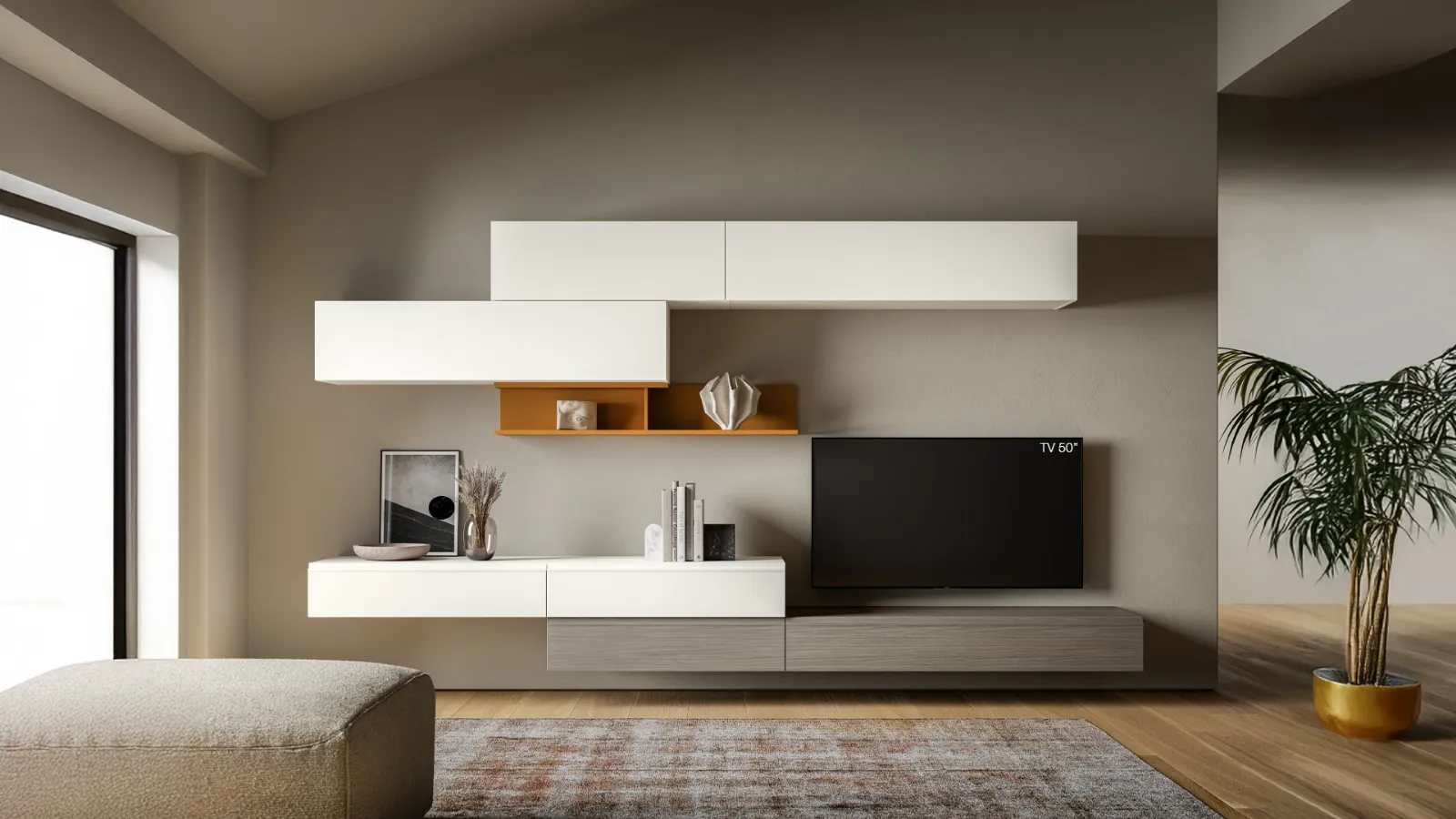 Scopri la nostra linea di mobili per la zona giorno della firma SantaLucia e potrai arredare i tuoi interni con un design unico e le doti contenitive di cui hai necessità. La Parete Attrezzata Pratico PTG439 di SantaLucia diventa presenza caratterizzante in stanze di ogni tipo grazie ai suoi elementi modulari e alla possibilità di valutare finiture, materiali, cromie, forme e tanto altro. Le Pareti Attrezzate moderne consentono di ricreare differenti ambientazioni nel living, liberando spazio e sfruttando bene ogni angolo.