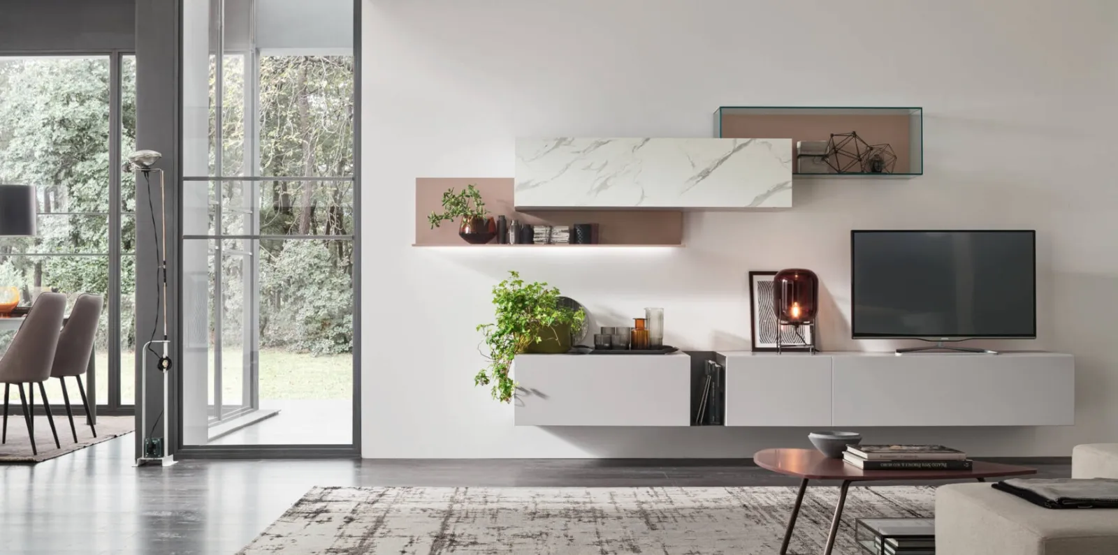 Maronese propone inediti modelli di mobili soggiorno, diversi per stile e conformazioni, finiture e elementi: scopri in negozio l'Arredamento Casa dei migliori brand. I mobili soggiorno in laccato opaco dalle linee moderne come il modello in foto sono davvero poliedrici e capaci di allestire il soggiorno usufruendo al meglio di ogni angolo. Lasciati affascinare da un ricco catalogo di arredi per la zona giorno e potrai trovare la parete attrezzata che fa al caso tuo. La Parete Attrezzata Unix Comp SU2107 di Maronese in foto è una tra le più belle soluzioni d’arredo in commercio: grandi doti di componibilità e le diverse opportunità di progettazione la rendono bella e funzionale.