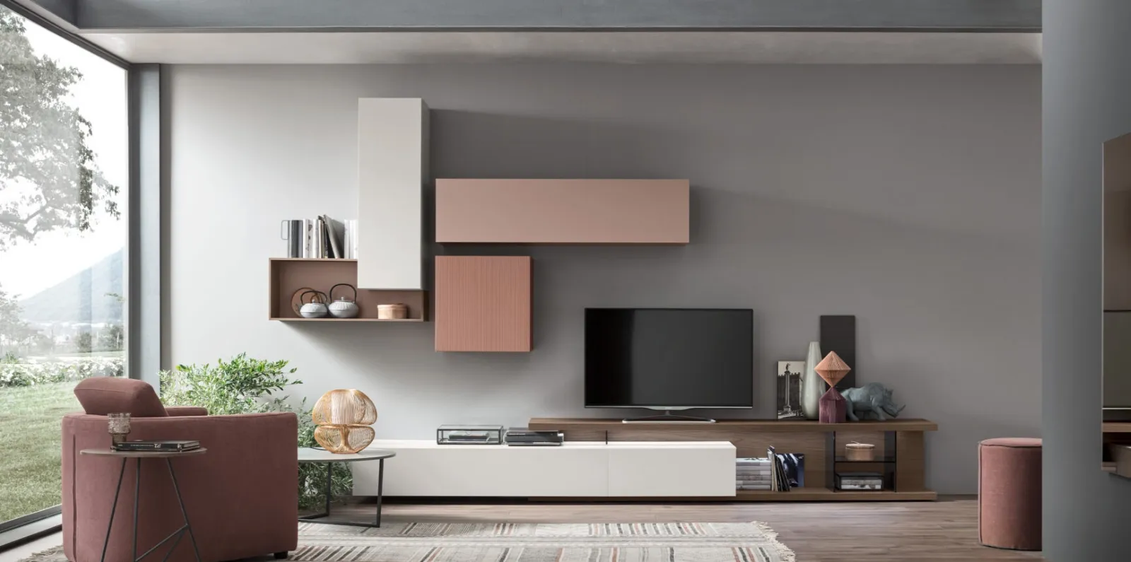 Le Pareti Attrezzate hanno conquistato un posto importante nella zona giorno delle nostre case: sono mobili plurifunzionali e salvaspazio sempre realizzabili su misura per te. Attraverso un gioco dinamico di accostamenti fra componenti a giorno o vani chiusi, le Pareti Attrezzate moderne arredano il soggiorno sfruttando bene ogni spazio. Questa parete attrezzata è una delle soluzioni della firma e ti consentirà di arredare il soggiorno secondo le più personali problematiche abitative.