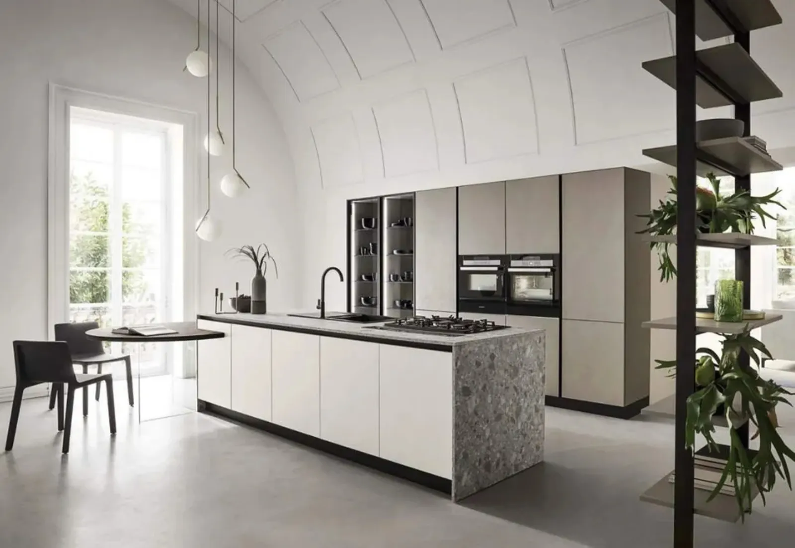Scegli la cucina che fa per te tra le differenti soluzioni con isola disponibili sul mercato: potrai allestire gli spazi valorizzandoli appieno. Se sei un amante delle composizioni moderne e non rinunci alla qualità assicurata dal noto e rinomato marchio, allora il nostro negozio è il posto giusto. Il modello in melaminico nella fotografia, si può declinare in molteplici configurazioni, cromie e finiture di forte impatto decorativo per lasciarti arredare l'ambiente con razionalità, garantendoti la praticità e contenitività di cui hai necessità.